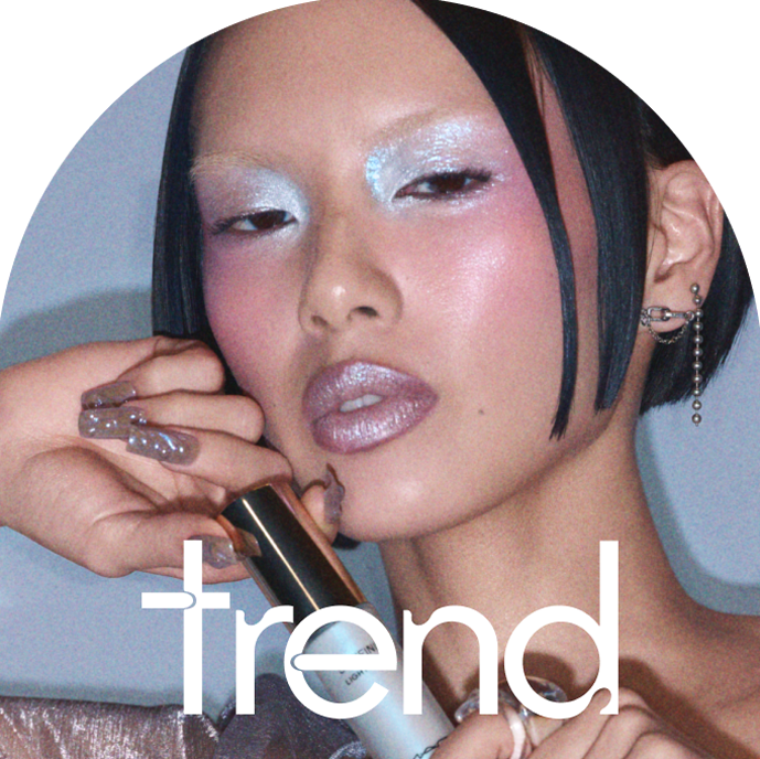A completare il look sono gli occhi dalle sfumature fredde e glaciali, grazie al Dazzleshadow Liquid in Silver Surfer. «L’effetto è incredibile: brilla e scintilla» – proprio come neve fresca. Il trend Glacial Glow? Un trend che va servito rigorosamente freddo.